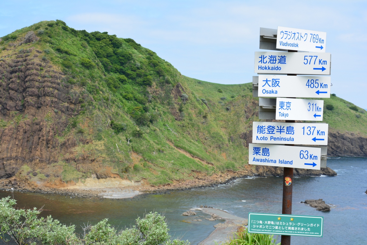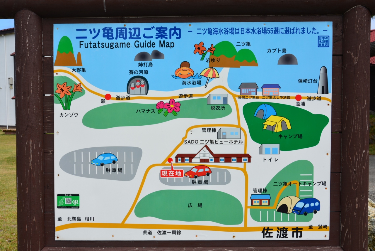 ドシンとたたずむ亀さんの存在感が素晴らしく、佐渡の美しい海とマッチしてとてもナイスな景観です。