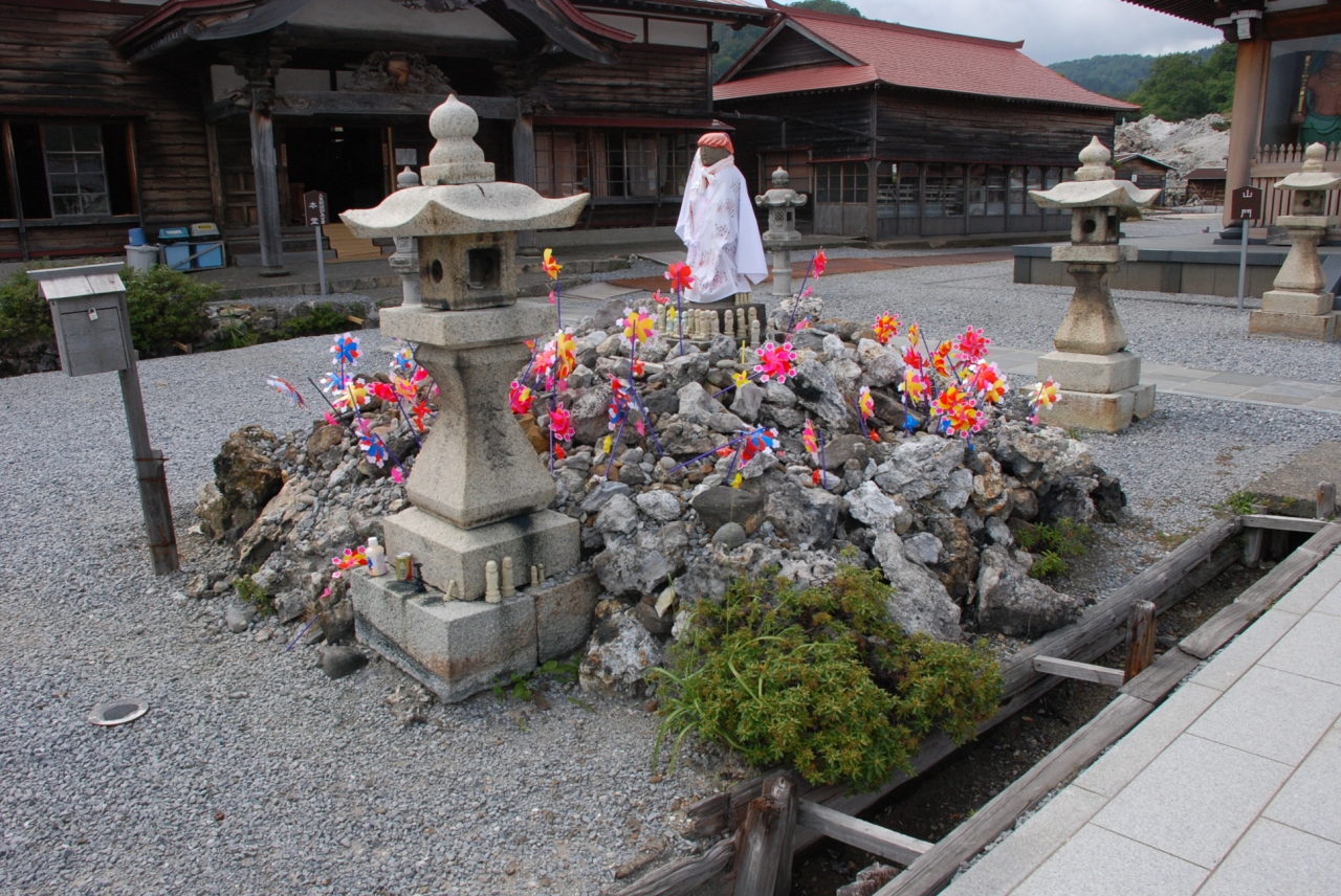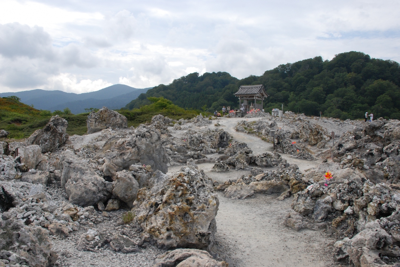 奥には硫黄の匂いぷんぷん立ち込める不毛の地獄がたくさんあり、無数のお地蔵さんや風車があの世に一番近い場所と錯覚させてしまう感じでした。