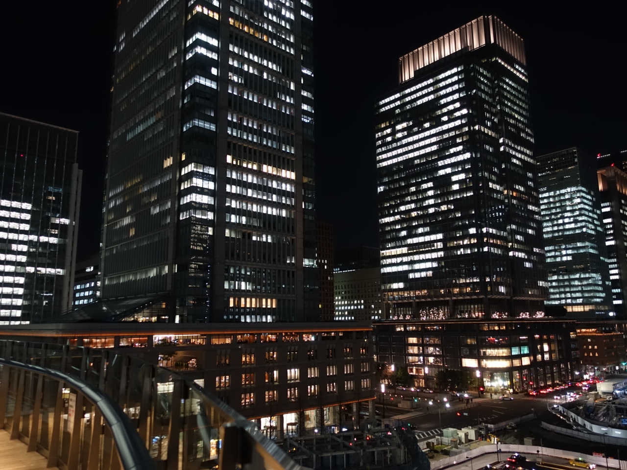 東京駅前に建つ複合商業施設「新丸の内ビルディング」ですが、夜景となると、さほど特徴を感じない今ひとつの光景でした。