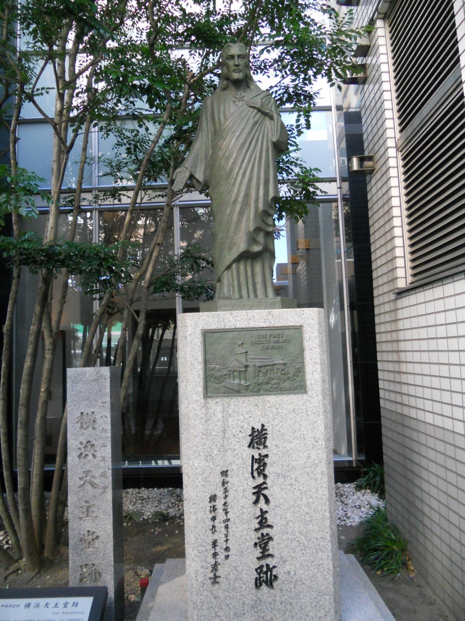 みなとみらい線の「元町・中華街駅」の近くですが、最初見つけられなくてキョロキョロしていたら、親切な地元の方が「何探してるの?」と声をかけてくださり、場所を教えていただきました。セブンイレブンが入ったマンションの前にひっそりとキリスト像が建っていました。