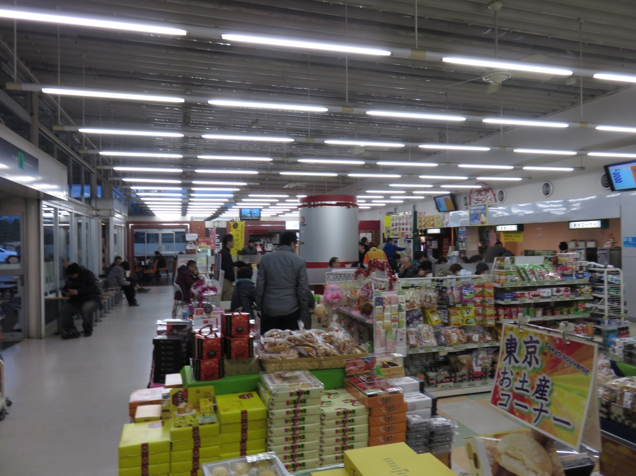 成田空港へ行く途中で朝食をとる為に立ち寄りました。朝、6時半過ぎでしたが、車も可なり入っていました。土産物もありますが、周辺の物と言うより 広範囲の土産物と言った感じです。食事は併設されていた松屋でとりましたが、冬場は寒いです。松屋の扉とPAの扉の位置が同じ位置にあるので両方が開くと寒い。空港で朝食をとると高いので此処に立ち寄る人が多いみたいです。