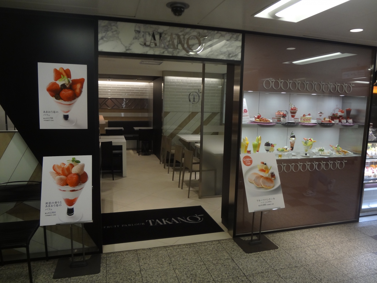 メトロ食堂街にあります。店内は明るいトーンでお洒落な空間になっていますが、高級フルーツを堪能するにはちょっと閉塞感を感じます。どれも1000円オーバーです。でも急フルーツですから。いただいたあまおうの苺パフェは値段もすごいですが、苺や山積みになっていて、その味といったら。年に1回は食べても良いかなって思いました。