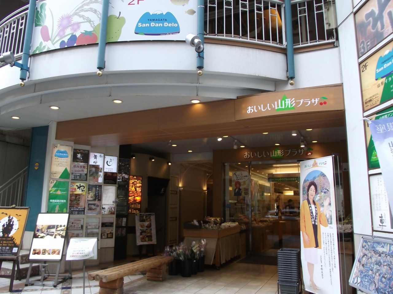 銀座柳通り沿いで中央通りと外堀通りの中間位のところにある山形県のアンテナショップで、出入口には、知事さんの出迎えの姿があります。 (本人でなく看板ですが)