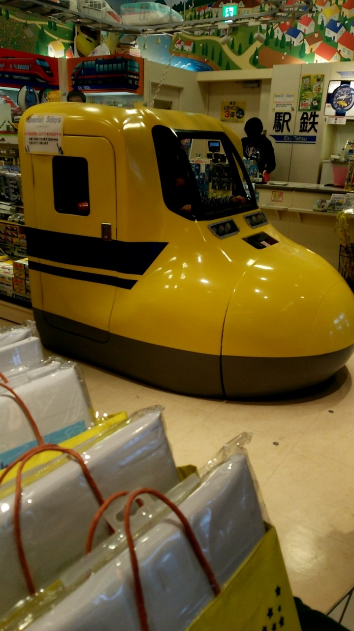 ダイバーシティ東京プラザ2階にある鉄道関連のグッズや玩具を取り扱うお店です。フジテレビ方面から来るとエスカレータを上ってすぐ右側にあります。店内には子供用の新幹線(ドクターイエロー)があり、それに乗ることができます。