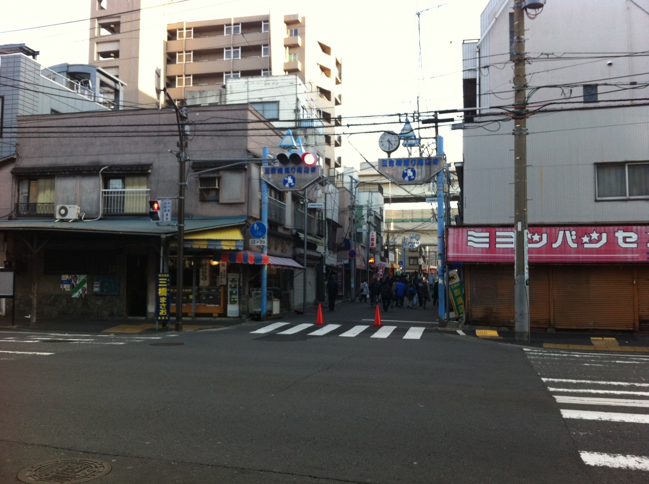 横浜橋商店街の南に抜けるとある三吉橋商店街、店舗数など規模でいったら横浜橋商店街のほうがすごいですが、レトロさ、昭和力っぷりが光る店が小粒でピリリと効いていてよろしかった。この商店街をさらに南に抜けると橋があります。その手間に演芸場がありました。最寄駅まで結構結構距離があり、ここいらの庶民をささえる昔ながらの商店街といった感じです。車は進入できないように赤パイロンが立ててあるので歩行者天国になっているようです。30mしかないので 出口みえちゃいます。