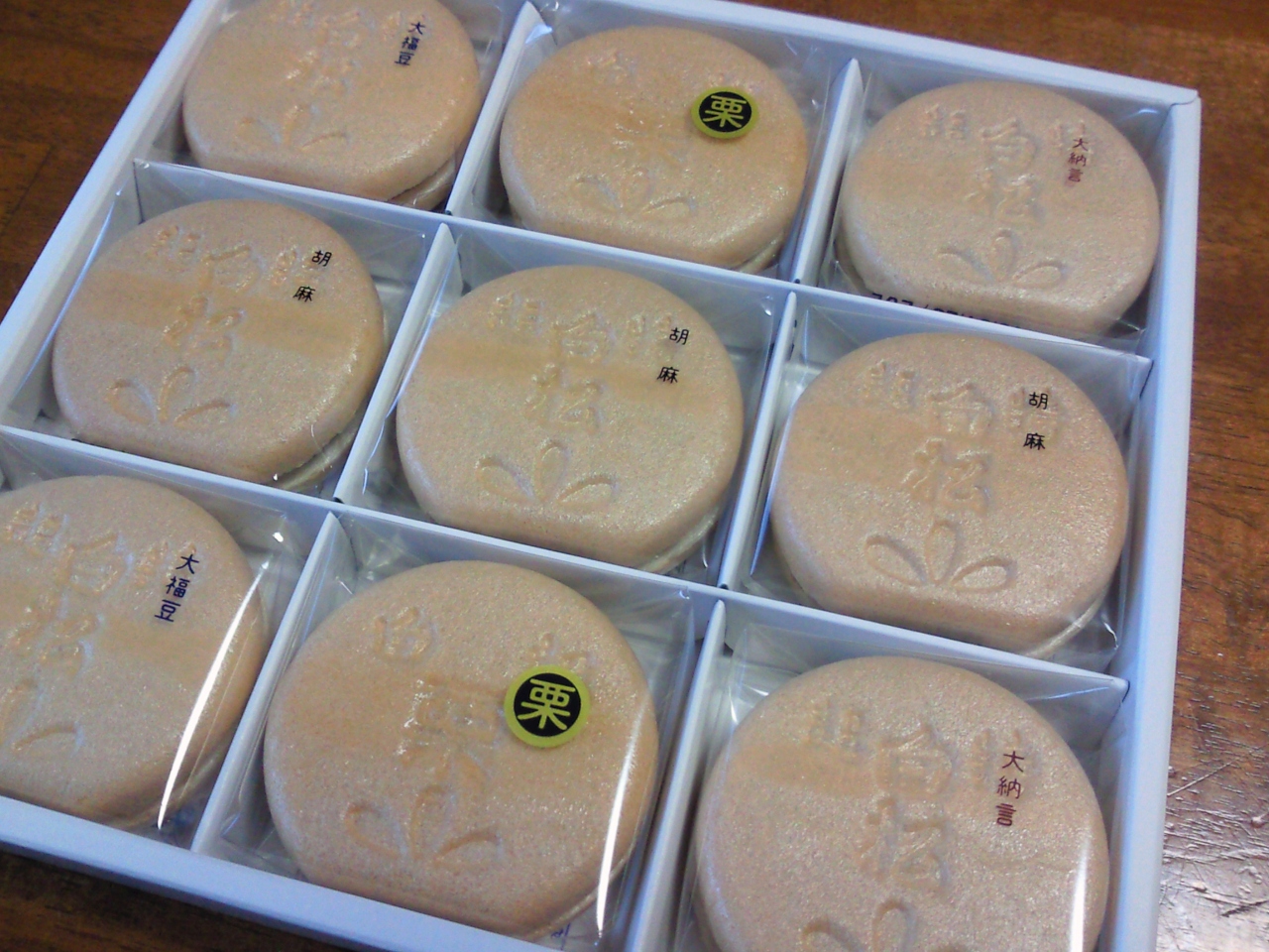 ミニ最中は、 小倉、ゴマ、栗、白あんの 4種が入っている