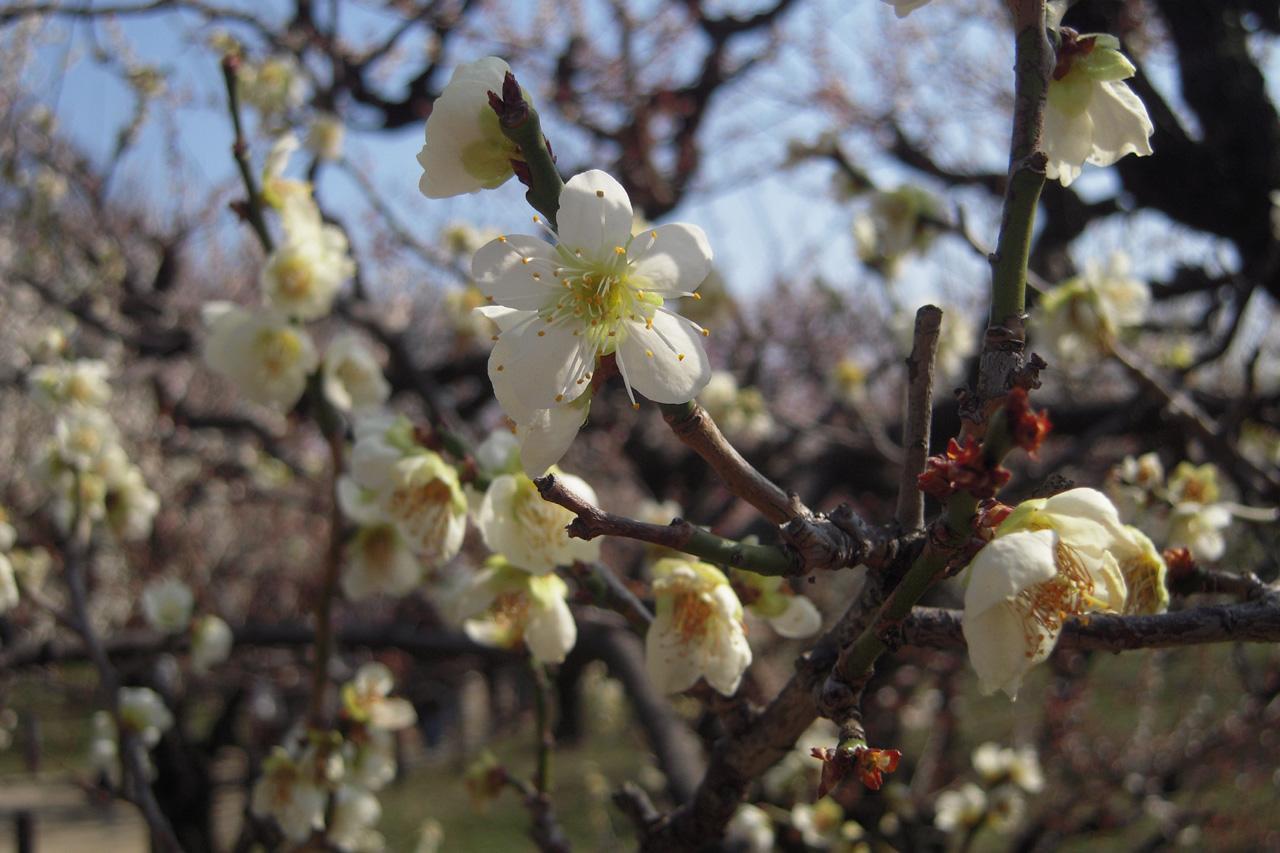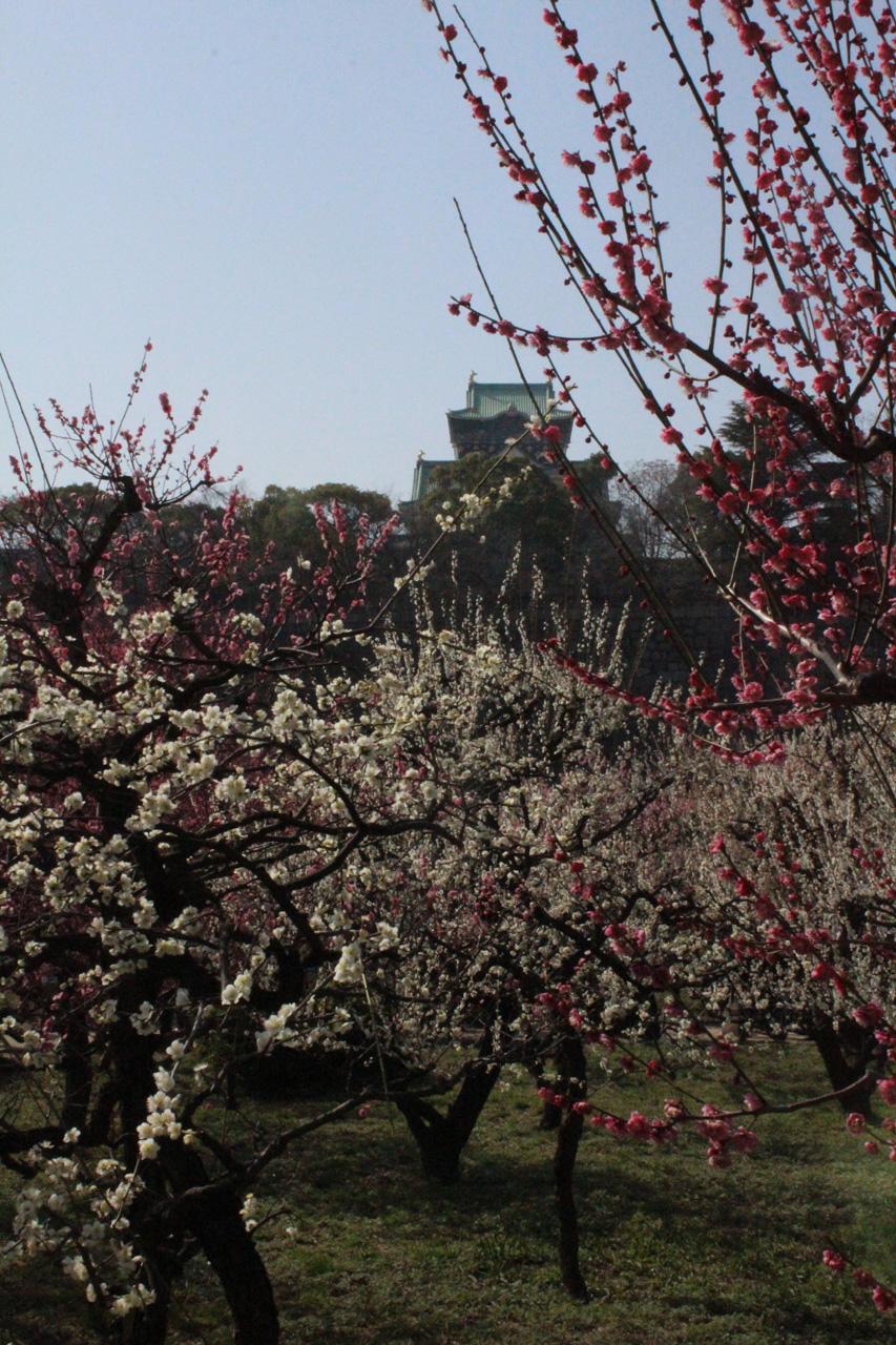 広大な敷地にたくさんの種類の梅が咲き誇り、遠景に大阪城があるので、大阪で梅見の満足感は100%。