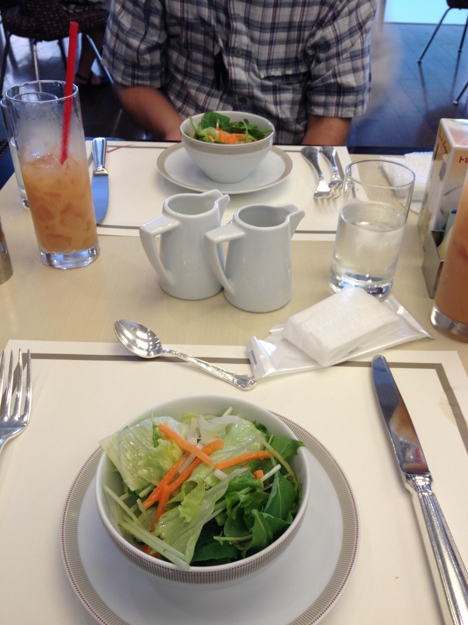 帝国ホテルの一階にあるレストランです。休日に行ったのでかなり行列ができていました。ここのパンケーキが有名らしいですが、お腹が空いていたのでランチセットを食べました。スープとサラダとドリンクと一品料理でした。メインのお肉がとても柔らかかったです!