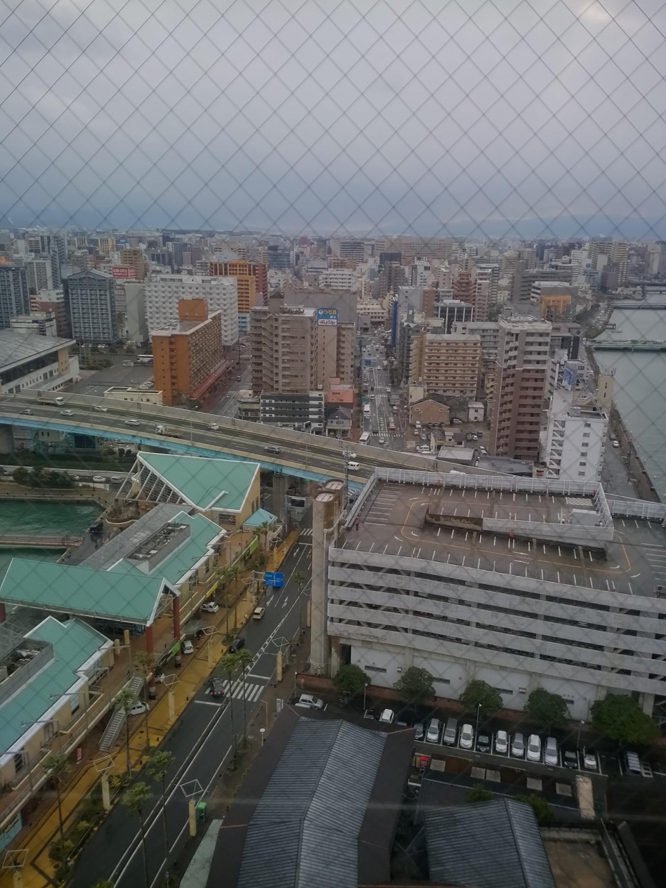 博多港にあります。無料で展望台に行くことができます。展望台の高さは75メートルで市内を一望するまでは行きませんが南側には福岡市内の街並みを見ることができます。博多港自体が韓国からの観光客が多いので日本時は少なめと思います。