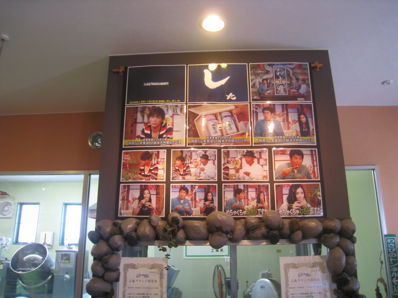 三島の観光バスツアーで行くとよくここに立ち寄ります。わさび漬が有名ですが、わさびを使ったほかの商品もたくさん販売しています。ご当地名物の「みしまコロッケ」や「本わさびソフトクリーム」もテイクアウトすることができます。