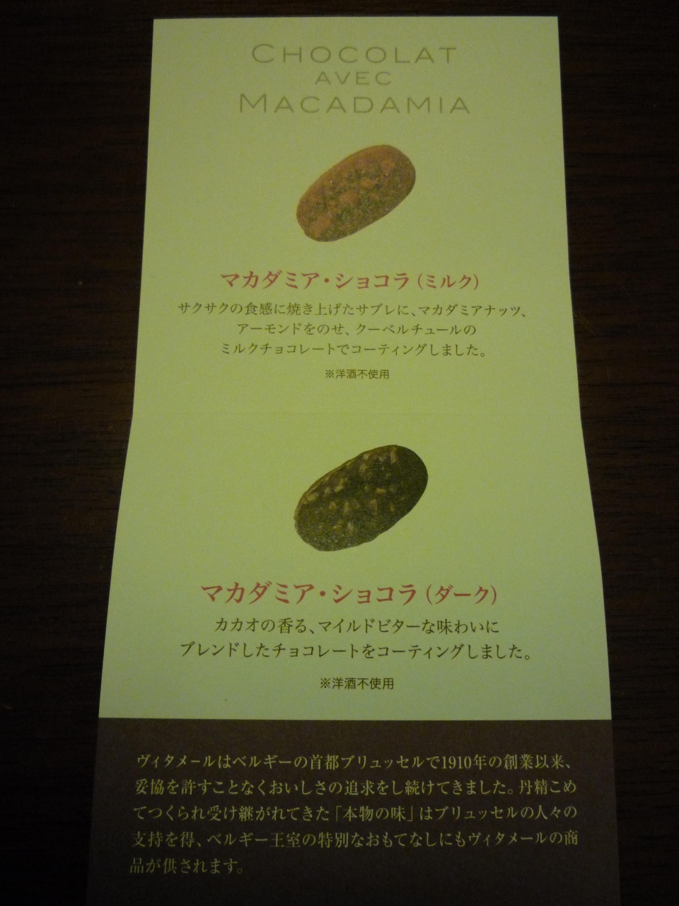 Wittamerの名前は知らなかったのですが,新宿に来るために乗ったANAの機内販売で知りました.新宿について夕食を探してうろうろしていたら,見たような名前のチョコレート屋さんがあって,機内で食べておいしかったなということで,メインの食事を買う前にお菓子を買ってしまいました.機内では1種類しか売っていませんでしたが,さすがにお店ではたくさんの種類があって驚きました.また,お店も結構混んでいてこれまたびっくりしました.