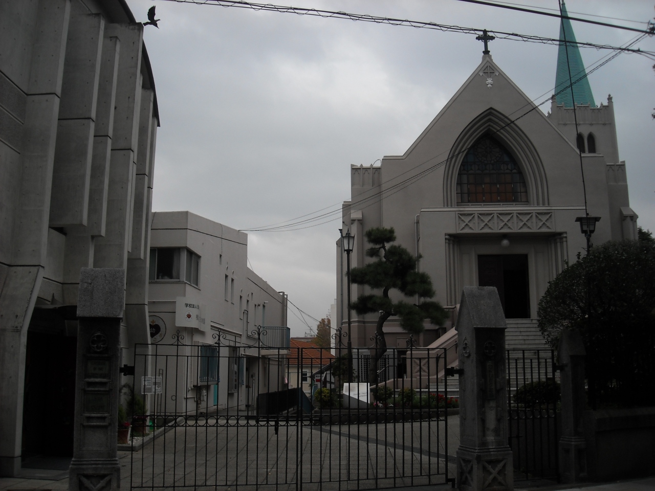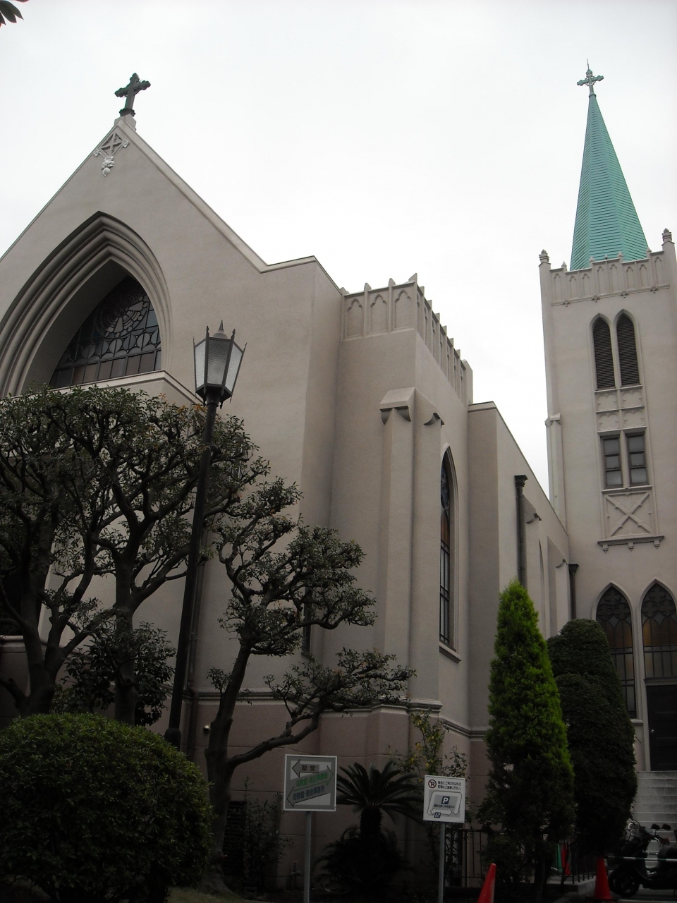 幕末、現在の中華街東門付近に横浜天主堂として建設(地下鉄出入り口付近に碑)。明治末期山手に移動。昭和初期に現在の姿になったといいます。その名前のとおりカトリックだそうです。冬というのに多くの旅人が教会の外庭で休息に佇んでいました、寺院とは本来そおいうものなのでしょう、