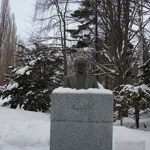 北海道大学構内のポプラ並木側の「花木園」の前に新渡戸稲造の胸像があります。「I wish to be a bridge across the Pacific」が刻まれています。新渡戸稲造は札幌農学校の2期生として明治14年卒業後、米ジョンズ・ホプキンス大学大学院に学び、明治24年にメアリーと結婚、帰国し、札幌農学校教授となりました。旧5千円札のモデルにもなりました。