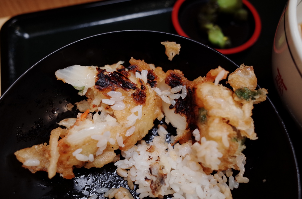 小田急藤沢駅改札横の箱根そばさんで、『ミニ海老&かき揚げ丼セット550円』を注文。安心の箱根そばであるが、かき揚げ丼を食べたら焦げ臭い。裏っ返したら、黒く焦げていた。そして丼つゆを全体にかけていないので半分はただの白飯だった。