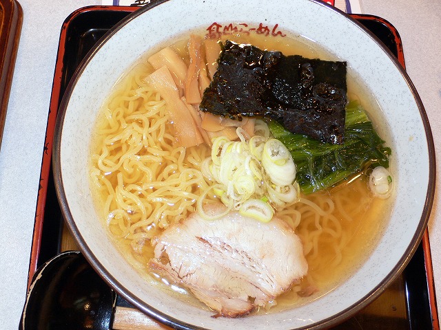 高山ラーメンは澄んだスープに海苔、メンマ、ネギ、チャーシューが乗っています。