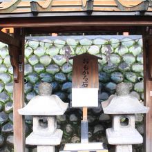 伏見稲荷大社の千本鳥居を通り抜けた後にある境内にあります。願いがかないやすいときは軽く感じ、願いがかないにくいときは重く感じると言われている石です。木札でおもかる石の場所を案内していて、多くの人が並んでいました。