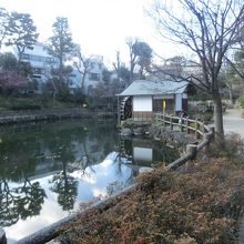 水車のある大きな池では、錦鯉の泳ぐ姿や亀が甲羅干しをしている光景を見かける。