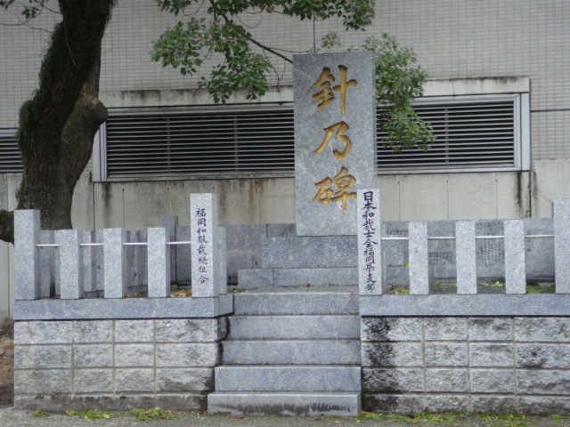 警固神社境内にある福岡和服裁縫組合が建立した針供養の石碑です。針供養とは日頃使っている針に感謝するもので、針をコンニャクに刺してお祓いを行うようです。大きな石碑ですがビジュアル的にはただの石碑ですので、観光的な面白さはありません。