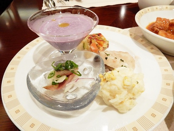 ディナー限定で出されるローストビーフがとてもおいしかったです。まったく臭みがなく柔らかくて食べやすい上質なお肉でした。そのままでも充分ですが西洋わさびと一緒に食べるとさらにおいしいです。パンとスイーツは一階のお店で販売されているものもいくつか出てくるのでそれも食べ放題なのが嬉しいです。