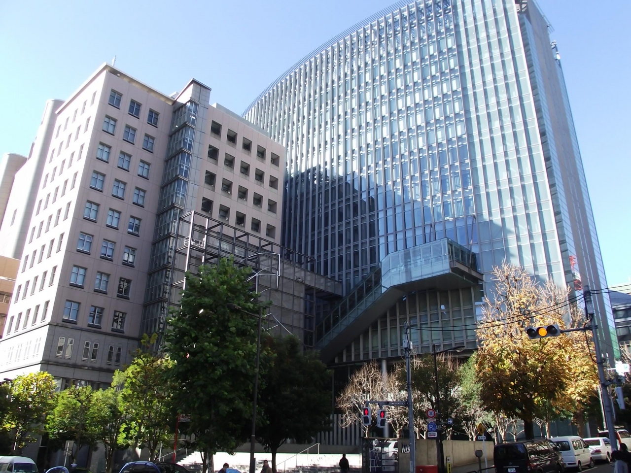 JR御茶ノ水駅御茶ノ水橋口を出て、橋と反対 (南) 側に歩いて数分、右手にガラス張りでやや丸味を帯びた高い建物が目に入ります。