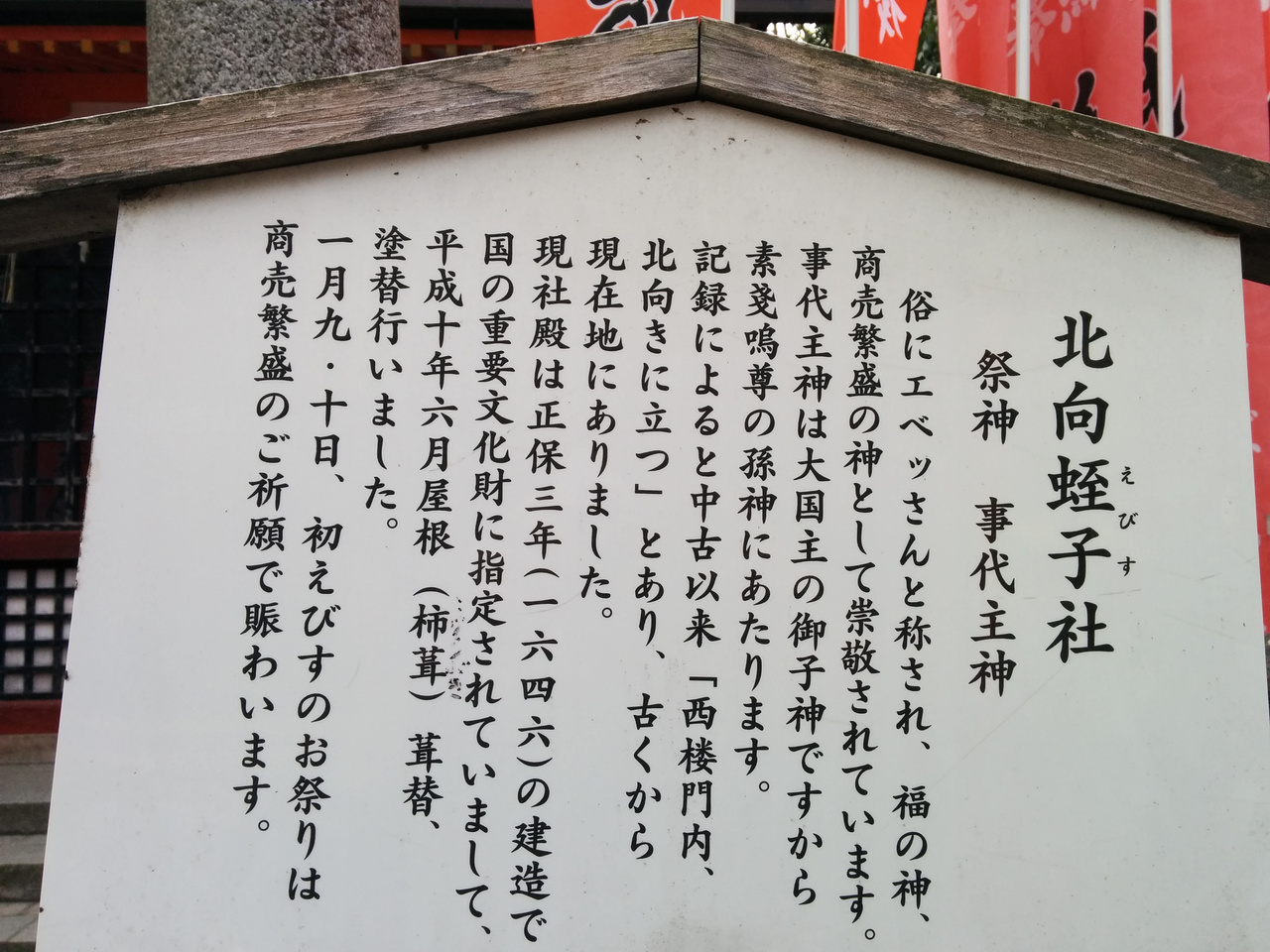さらに、この社が「北向蛭子社」と呼ばれるゃうになったのは、社が北向に祀られていることから、そのように呼ばれているそうです。