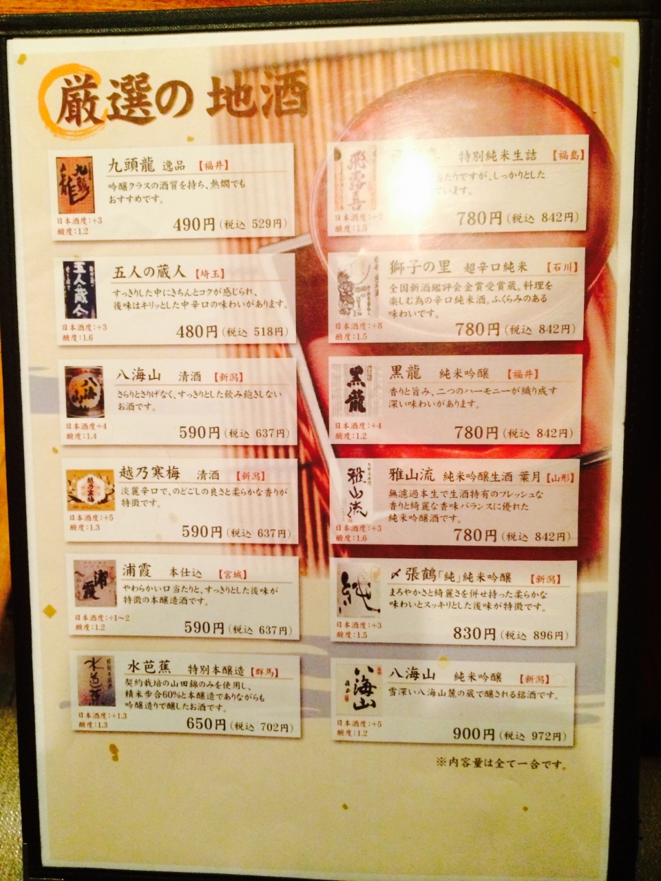 種類はあまり多くはないですが厳選地酒がとても美味かったですよ!