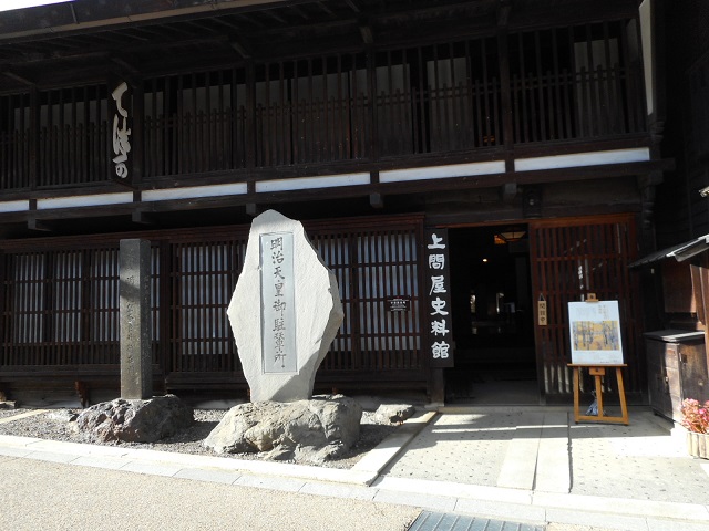 奈良井宿にある問屋住宅で、1840年築の国指定重要文化財です。問屋(といや)は、宿場で馬や人足を管理した家で、奈良井宿では手塚家がこれにあたりました。内部観賞可(入館料300円)で、残っていた問屋の資料が展示してあります。また、明治天皇が立ち寄ったことでも有名で、天皇が使用した茶器類も展示してありました。明治天皇行在所の碑が家屋前に立っていて、目印になります。