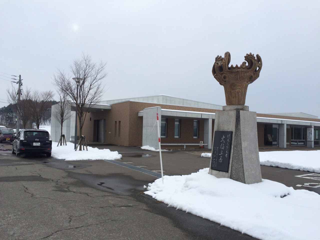 建物の外には、復元した縦型と丸型の住居が見られましたが、雪が積もっていたので、遠くから眺めるのみでした。