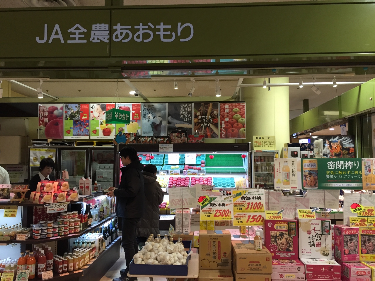 1階に農協が入っていて、にんにくやりんご、山芋など青森県産の食材が販売されていました。