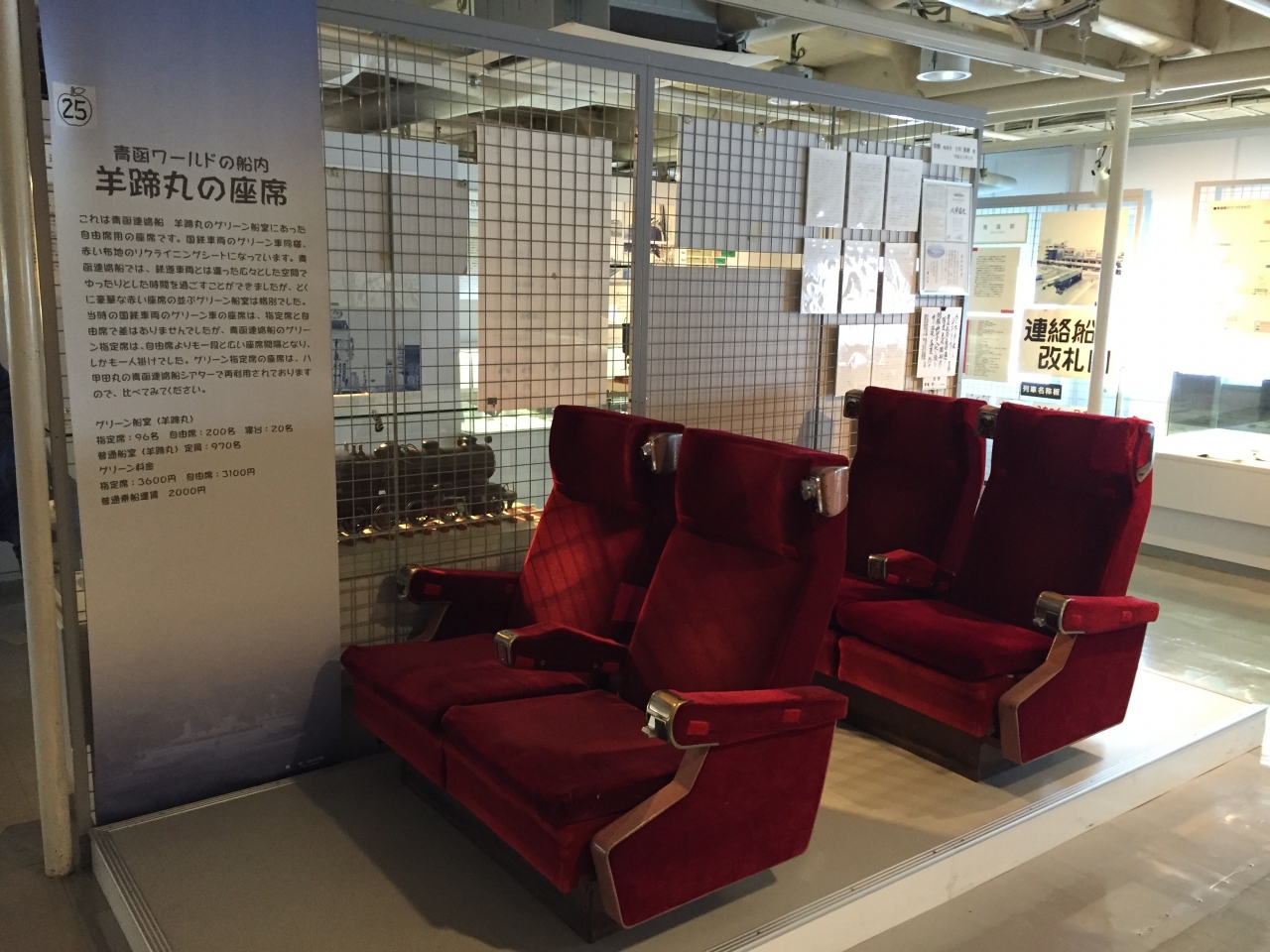 当時の青森のりんごの行商の様子や、船の座席やエンジン室、鉄道が収まっている所まで見学できます。