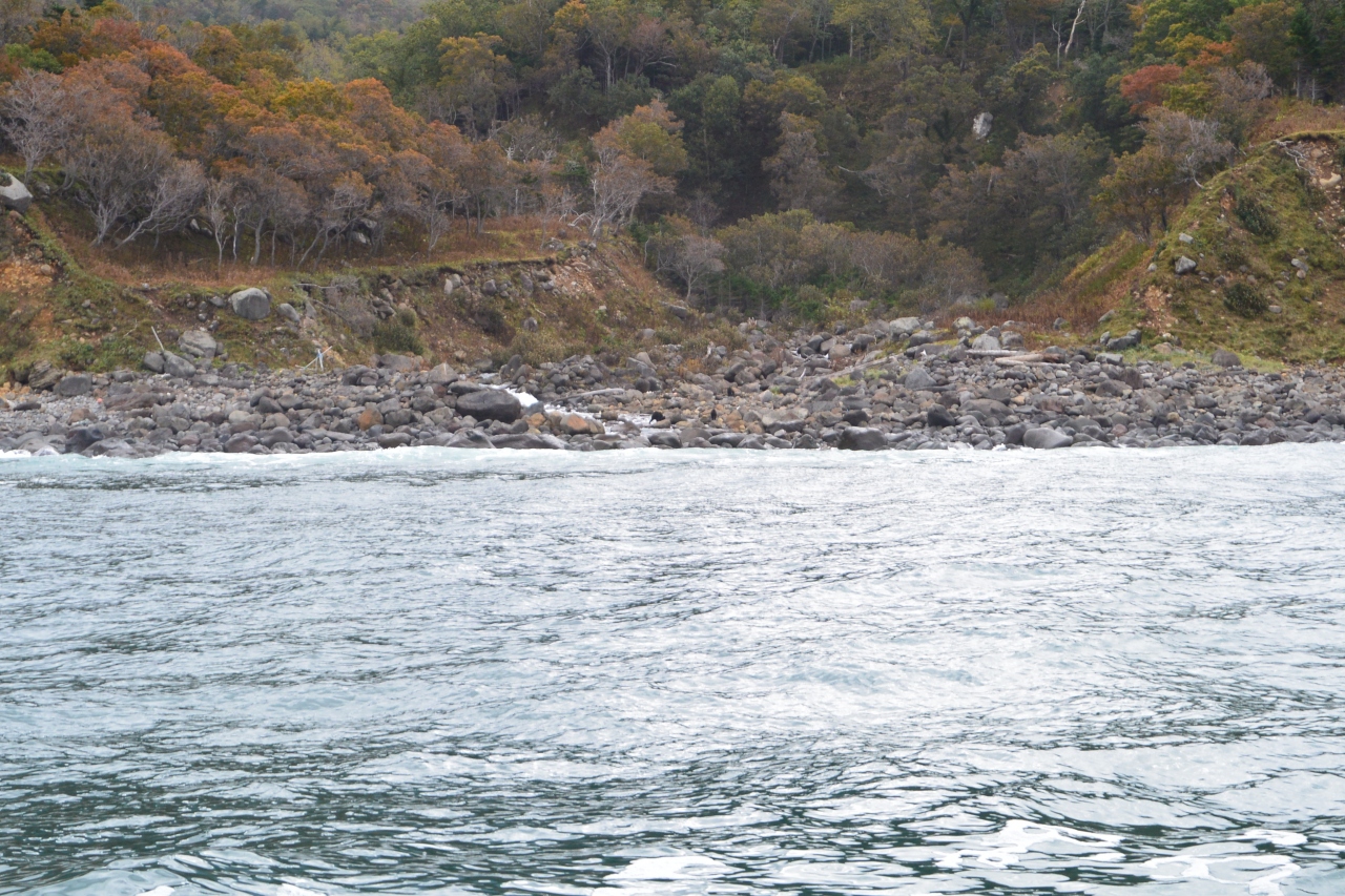 知床ウトロ半島クルーズではおなじみのヒグマ遭遇ポイントです。