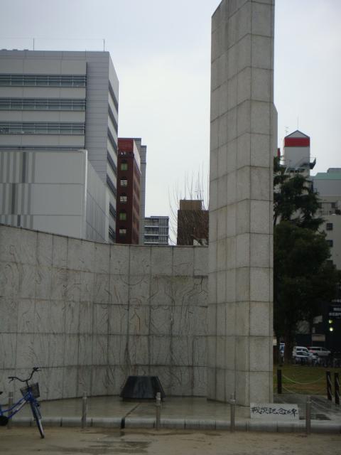地下鉄中州川端駅から徒歩数分、櫛田神社の裏手にある公園です。典型的な街中公園で、公園と言うよりは広場の感じで、中央部には「戦災記念碑」の石塔が建てられています。