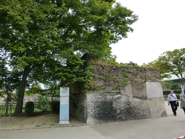 「太鼓櫓跡」は、桜門からそとへでて大手門の方へ歩いたところにありますが、櫓としてはありません。石垣のみが残っています。1628年の創建当時、ここには南仕切門があり、石垣の上に時刻を知らせる太鼓があったとのこと、二層櫓でありこのことから太鼓櫓と呼ばれていたようです。1868年焼失しました、残念ですね。