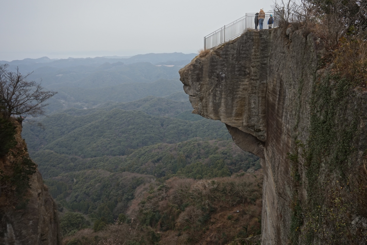 鋸山山頂展望台にある地獄のぞきからは東京湾、房総半島、富士山等が見渡せます。またここは断崖から突き出し、下方に前傾しているため、かなり恐怖感があります。それで地獄のぞきと言われるのかもしれません(確かな情報ではないです)