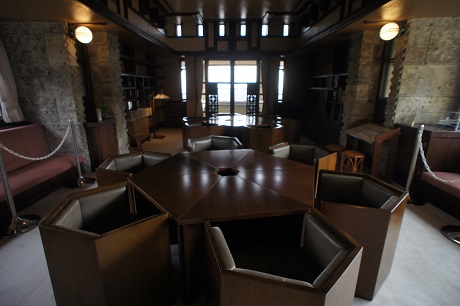 芦屋市街を一望できる高台に建つ「ヨドコウ迎賓館」は、大正7年に「櫻正宗」の銘柄で知られる灘の造り酒屋・櫻正宗の八代目当主の別邸として、フランク・ロイド・ライトによって設計されました。現在は淀川製鋼所の所有となり、社長公邸や独身寮として使用されていました。国の重要文化財に指定され、平成元年からヨドコウ迎賓館として一般公開されています。阪急芦屋川駅から北へ「ライト坂」を登って行きました。