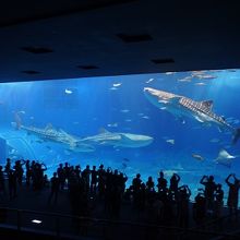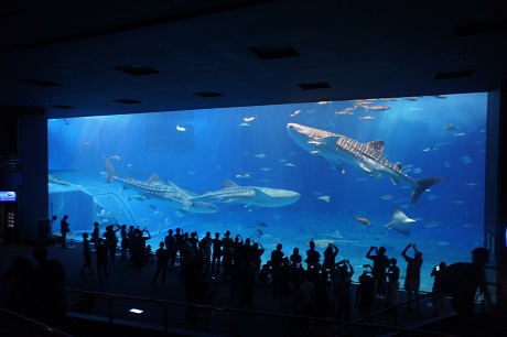 沖縄本島北西部の本部半島、備瀬崎近くにある「海洋博公園」内の水族館です。沖縄の海の世界を再現した水族館では熱帯魚から深海魚まで幅広い南国の魚が紹介され、ここでしか見ることのできない生き物たちも多数展示されています。見どころはメインの大きな水槽を優雅に泳ぐジンベエザメです。また、館外にはイルカショーなど無料の施設があり、一日中いても楽しめます。