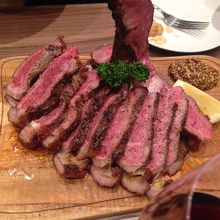 ワインやサングリアを飲んで、サラダ、ピザ、などなど!メインはびっくりするほど大きいお肉!!!これは見たことないーなのにかなりのお手頃値段!!