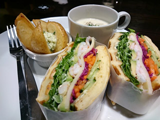 ランチとして頂いたのは“エビとアボカドのワッフルサンド”。