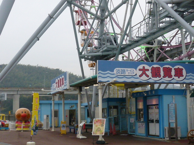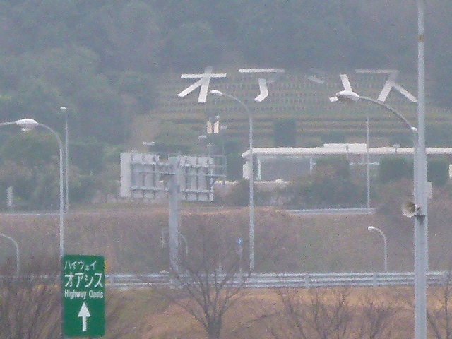 本州から久しぶりに海峡越えし淡路島にやってきました。明石海峡大橋の上からみる海峡の風景がよかったので、さらにここ「淡路サービスエリア」みる景色も期待したのですが天気が悪くなり良く見えません。残念、写真掲載は省略です。このSAには珍しく観覧車がありますが寒いせいか利用者はいませんでした。さすがに淡路島ですね、玉ねぎなどの特産物が安価で販売しています。向こうにオアシスと書いてあるところがあります、行ってみましょう。