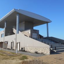国道126号線から300メートルほど入った場所に施設があります。展望館は駐車場の真横に位置していて、展望館はパノラマ展示館としてギャラリーのような使われ方もしていますが、展望館の階段を上っていくと、そのまま展望スペースに行くことができます。飯岡刑部岬は崖の上に位置していますので、特に九十九里浜方面への展望が広がり、飯岡の漁港や砂浜の湾曲した姿を見ることができ、とても見応えがあると思います。