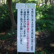 ドラマでおなじみのあの吊り橋を渡ろう!と意気込んで訪れましたが、なんと工事中で通行できませんでした…。工事期間:平成27年11月4日~平成27年12月28日。たった二カ月の工事期にぶつかってしまうとは・涙。再訪します。