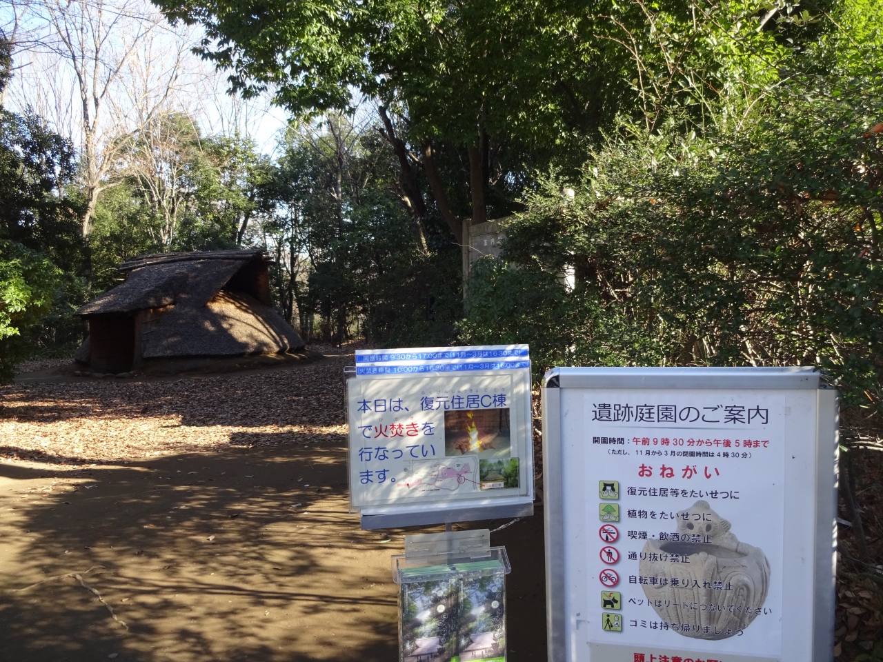 この施設のある場所が縄文時代の集落跡で、その場所を生かし、他から移築した物と合わせて住居が復元されて当時を思い描く場所となっている。