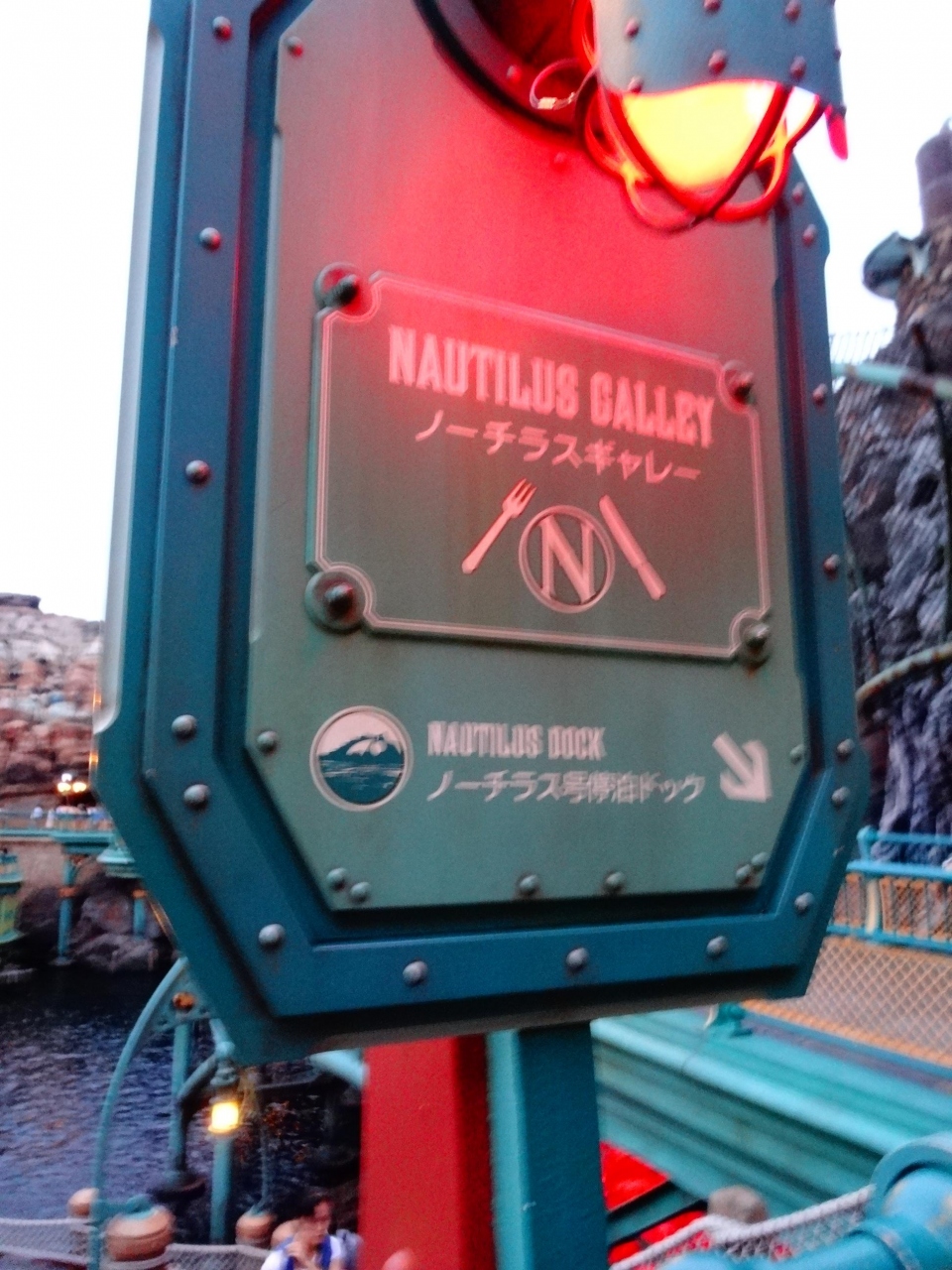 ミステリアスアイランドにある軽食ができるテラス。潜水艦ノーチラス号をながめなれ、