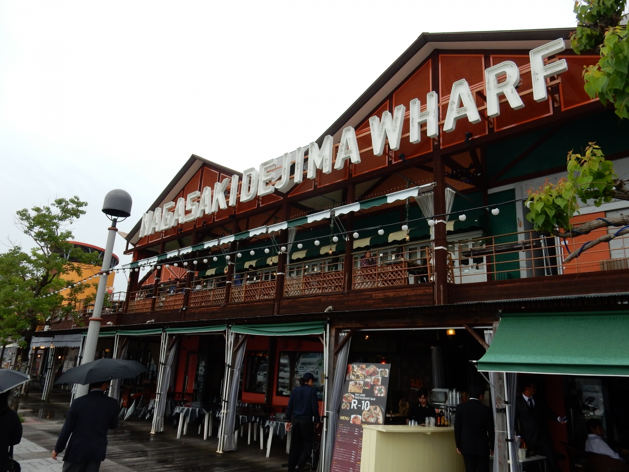 名前の通り、出島からそのまま海側に出た場所にある、2階建てのグルメ・ストリートです。多くのお店が海側にテラスを構えていますので、海やその先にある稲佐山を見ながら、ゆっくり食事を楽しめます。