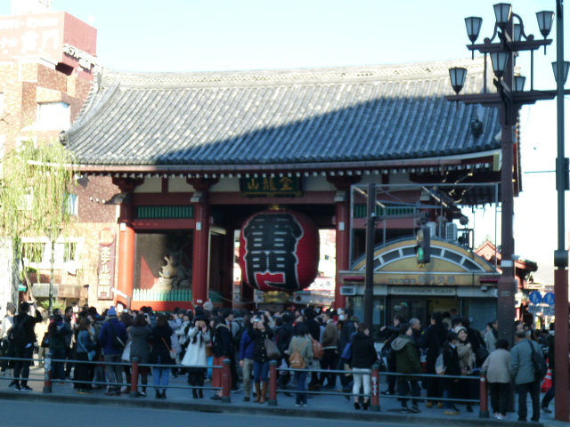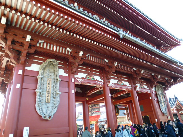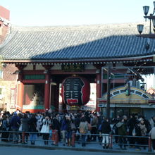 国内外からの参拝客が多く参道は「雷門」から「仲見世」を進むと入母屋造の立派な二重門「宝蔵門」です。