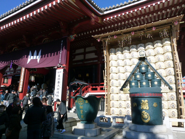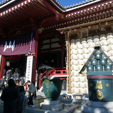 国内外からの参拝客が多く参道は総門の「雷門」から「仲見世」を進むと「宝蔵門」へと出ます。