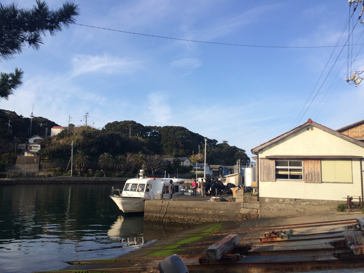 朝の一便の船で牟岐から診療所の方、郵便局の方が乗り込み小さな船も通勤船?に