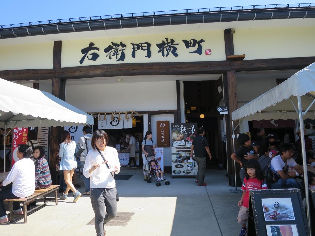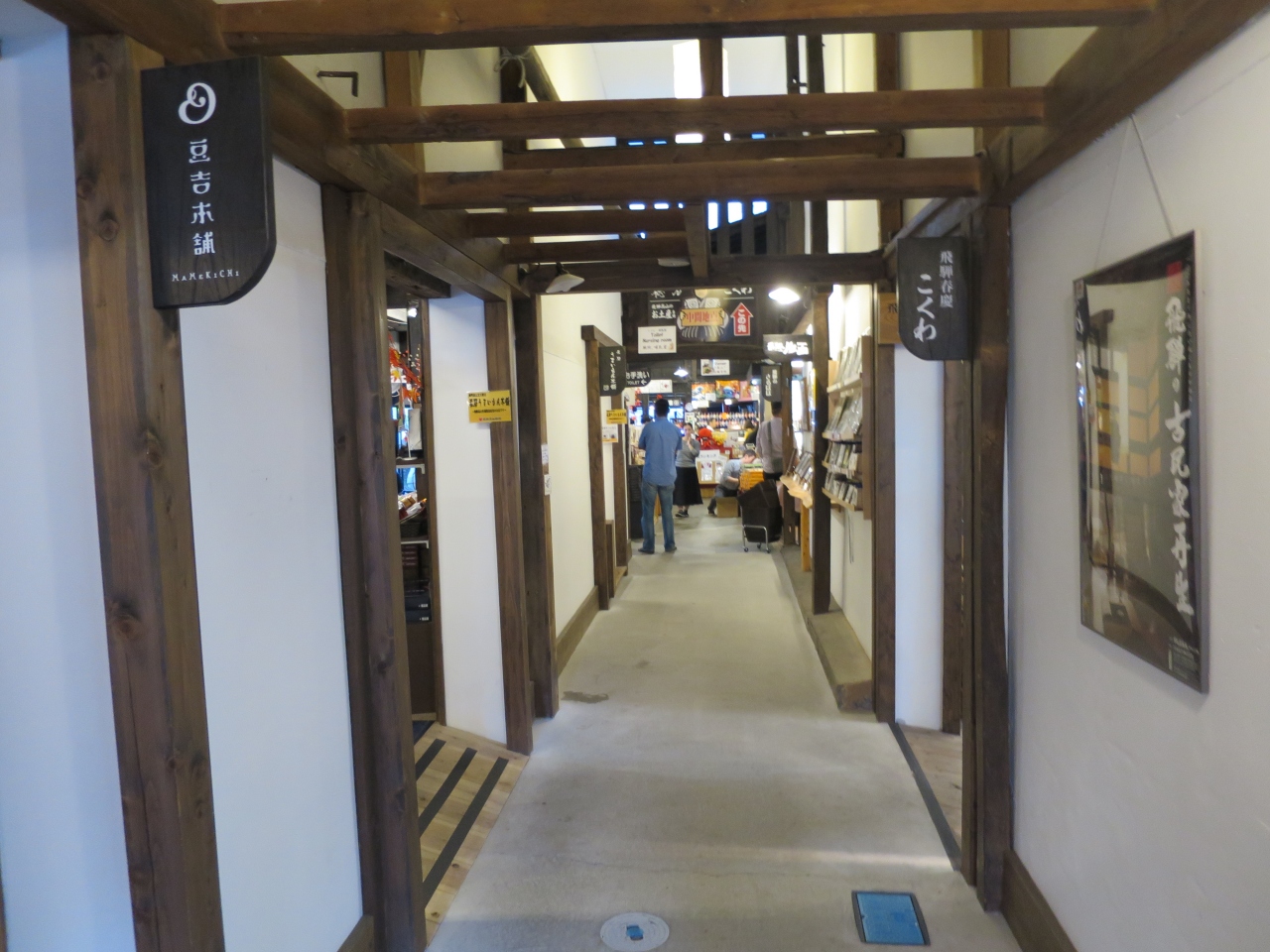 飛騨高山の宮川に架かる鍛冶橋東側、安川通りと並行して右衛門横町があります。宮川朝市の横から入れ、飛騨うまいもん本舗、箸工房きっちん遊膳、豆吉本舗などお店がはいるショッピングモールの様になっています。高山土産や食べ歩きフードが買え便利です。