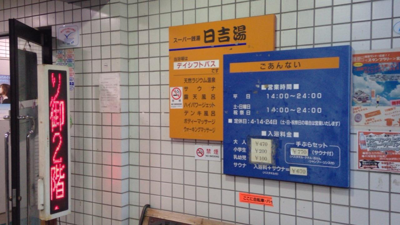 横浜地下鉄グリーンライン日吉本町駅からほど近いところにある温泉銭湯がここ「日吉湯」。ビルの2Fに受付があり、銭湯価格470円で楽しめるのはありがたいです。”和風”と”洋風”という浴槽が男女でそれぞれになっており、今回は”洋風”が男湯でした。”洋風”側には入り口の右点前に、若干狭めですが、黒い色の温泉があり、源泉は17度ちょっとなので、加温して適度の温かさになっていました。それ以外の湯船はお湯で、露天もありでした。首都圏に多い”黒湯温泉”も味わうことができ、ゆったりと満足感にしたった時間でした。