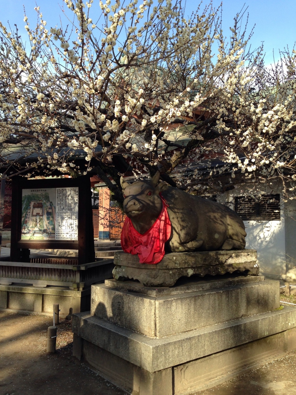 もう梅も咲き始めており、境内の撫で牛が梅の花に囲まれている姿に天満宮らしさを感じました。